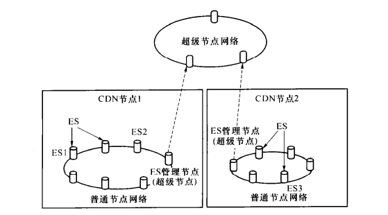 图6-6将某些ES节点配置为超级节点服务器(SNS)组成层次化P2PCDN网络