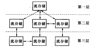 对于集中式的媒体分发系统,媒体文件是普通的编码文件,如Avi.Avix.ASF等文件,这些文件在流服务器节点的传递釆用文件复制的方法,一般情况下,在一个文件复制完成后,才可以进行流服务。在分布式媒体分发系统中,为了保持直播节目和点播节目这两类节目媒体文件格式的一致性,媒体文件格式可以采用流格式封装,即普通的编码文件在进入媒体分发系统时以流格式进行存储。流服务器节点间传递的是流格式文件,而不是普通的编码格式的文件。为了分布式存储,媒体内容进入媒体分发系统时,流格式文件按照分片方式分布式存储在媒体分发系统中。流服务器以片为存储单位。一个媒体文件可能被切割成多个分片,并存储在多个服务器中。媒体分发系统需要对分片进行索引管理,当用户请求播放一个影片时,流服务器有能力按顺序检索出分片,并按播放控制要求进行播放。为了对各节点的流存储和对用户流发送的精确控制,在流服务器节点的流交换前会传递该流的信息索引文件,可能的信息包括:平均帧间隔、媒体类型、帧分布信息等。媒体文件的流化处理在上传节点完成,媒体分发网络对流进行透明存储和交换。针对IPTV系统中媒体内容大容量的特性,对内容的存储不再釆用由一个磁盘阵列集中存储的方式,而是釆用由不同的切片式服务器分散存储、集中管理的方式,其基本原理是基于P2P技术釆用切片的方式存储,将体积巨大的视频文件切分成一个个固定大小的视频切片,然后以切片为基础进行存储。流化后的媒体内容分片按照一定的分发策略分布式地存储在不同层次的存储节点(服务器)内,而这种分发存储策略根据用户对视频业务的使用模式和运营商的商务模式来确定。图6-9是一个多级分布式内容存储体系架构,各存储节点按照承载网络的拓扑结构和用户的分布情况进行部署。