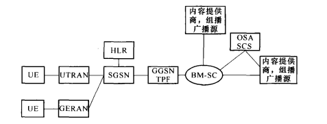 其中,广播/多播业务中心(BM-SC)是新增加的网元,主要负责提供和传送移动广播业务。BM-SC是MBMS中内容传送服务的输入点。它负责建立、控制核心网中MBMS的传输承载,同时也负责MBMS传输的调度和传送。BM-SC还向终端设备提供业务通知。该通知包括了终端想加入MBMS业务的所有必要信息(例如组播业务标识、IP组播地址、传输时间、媒体描述等)。BM-SC还用于产生来自内容提供商的数据话单,同时它还负责管理组播模式下的安全问题。