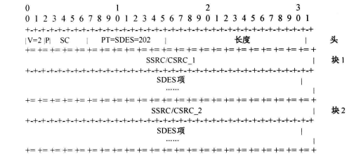 SDES包为三层结构,由头与数据块组成,数据块可以没有,也可有多个,组成项描述块所表明的源。RTCP包结构如图2-2所示。